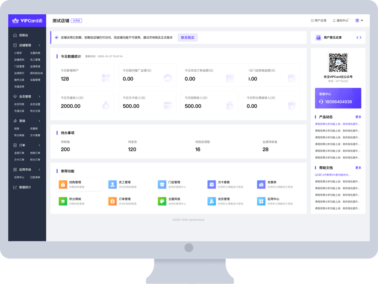 包括抢购套餐管理、优惠券管理、积分商城管理、次卡管理